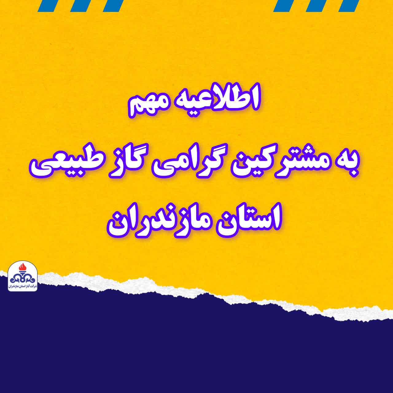 اطلاعیه مهم به مشترکین گرامی گاز طبیعی استان مازندران